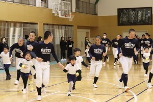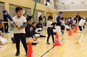 1/24、大牟田高校野球部員のみなさんとの野球体験レクレーション。かっこいいお兄ちゃん達にボール投げやバッティングなどを教えてもらいました。