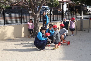 宅峰中学校3年生の皆さんが保育体験に来てくれました。子ども達もお兄ちゃんお姉ちゃんとたくさん遊ぶことが出来て、とても嬉しそうでした。